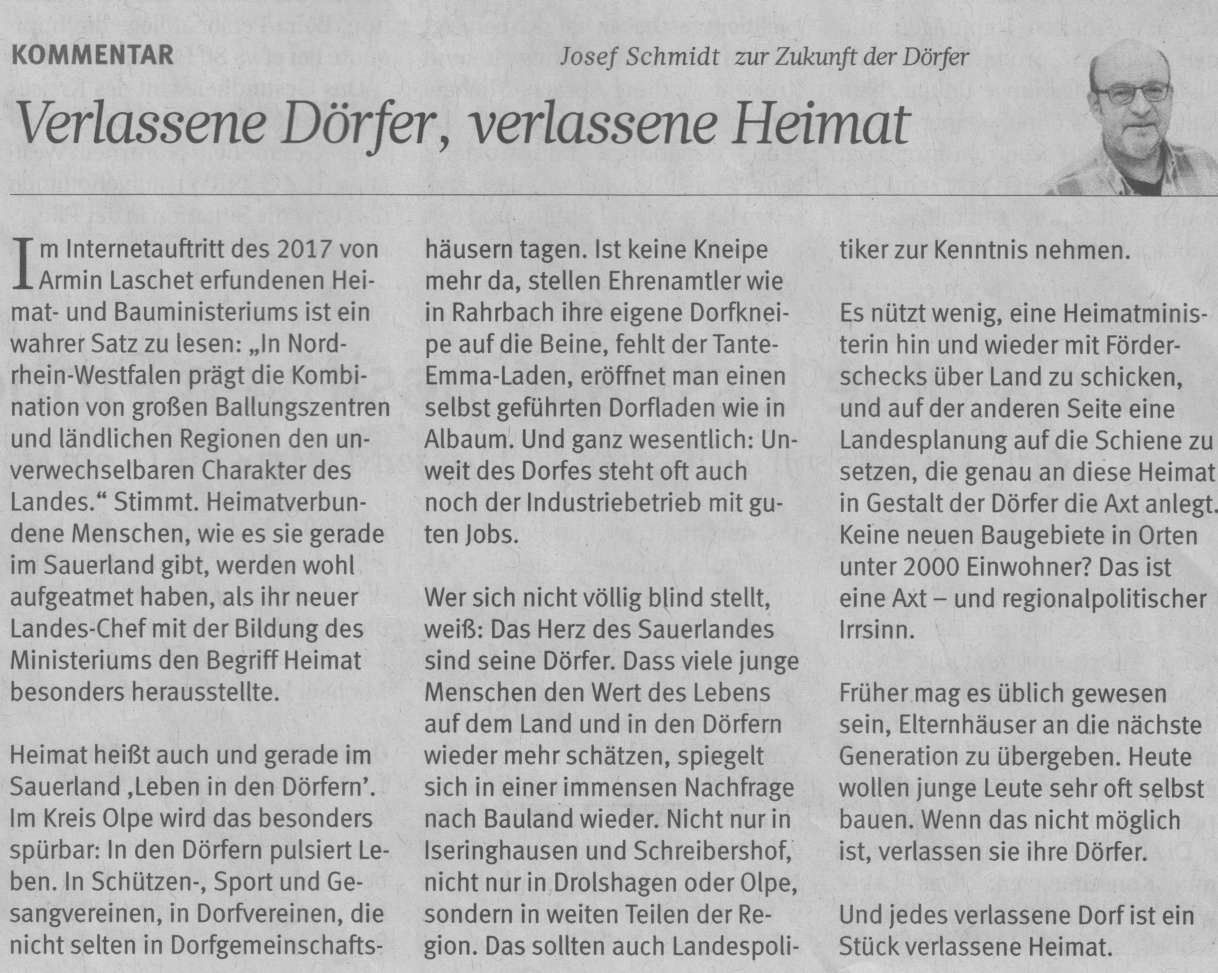 Auf den Hinweis, dass die Landesregierung an ihrem 2.000-Einwohner-Limit für weitere Baugebiete festhalte, nimmt er kein Blatt vor den Mund: „Die wollen die Dörfer ausbluten. Wir in Drolshagen haben keine Dörfer mit mehr als 2000 Einwohnern. Nur den Zentralort. Das kann es